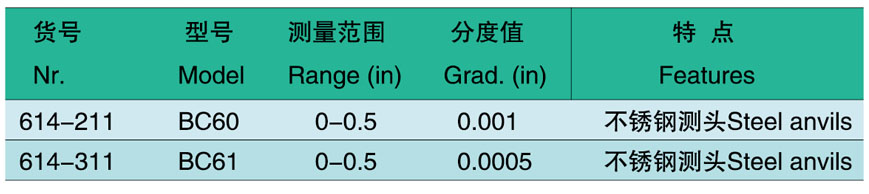 鋁合金表架、不銹鋼測頭及測砧組合